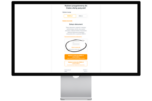 3. Po dodaniu dokumentu potwierdzającego Twój dochód wybierz interesującą Cię opcję pożyczki i przejdź do dalszej części procesu.